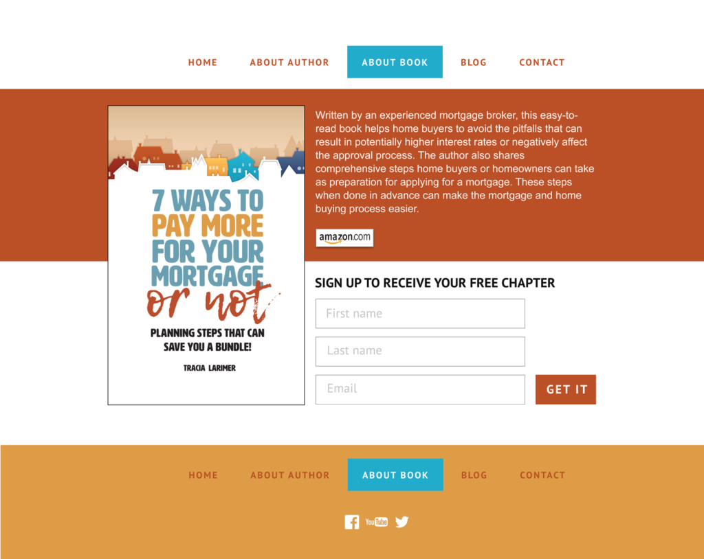 - Landing page house-designed template with colors and fonts based on your book cover